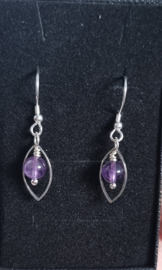 Amethyst and sterling silver leaf shaped earrings