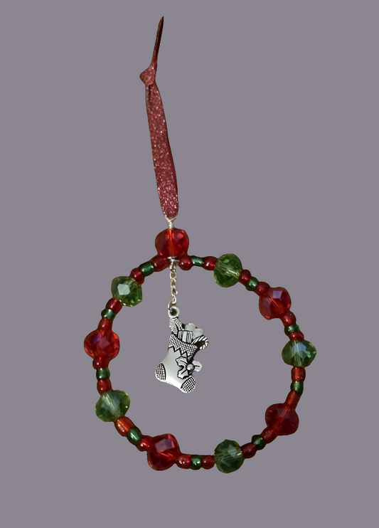 Christmas stocking, handmade beaded ornament