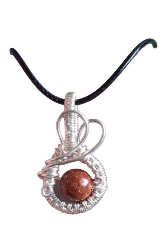 Goldstone and wire weave pendant
